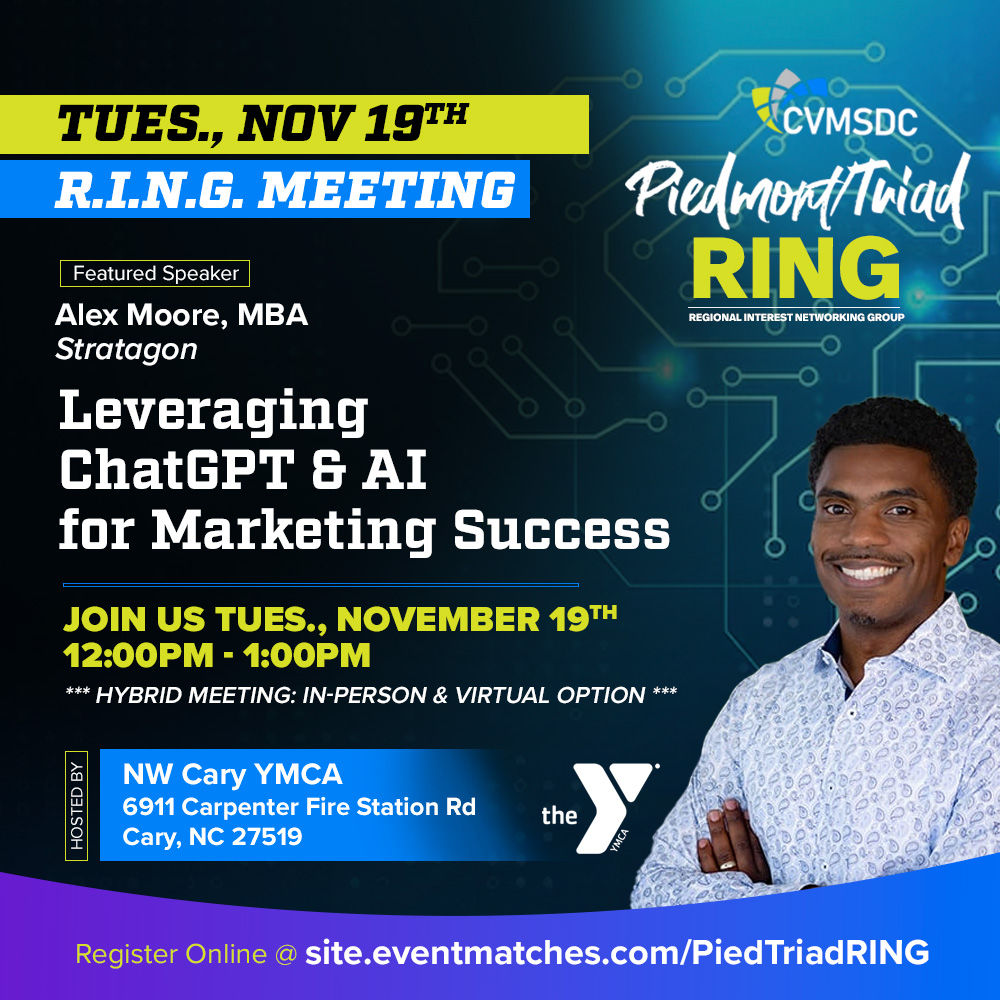 The Piedmont RING comprises Raleigh-Durham and the surrounding areas. This area is a powerhouse for many large technology and pharmaceutical companies in North Carolina and many minority-owned businesses that support these large companies. We encourage you to join our monthly meetings, connect with corporate and MBE members, and assist with our mission of growing strong minority business participation in the Raleigh-Durham area.